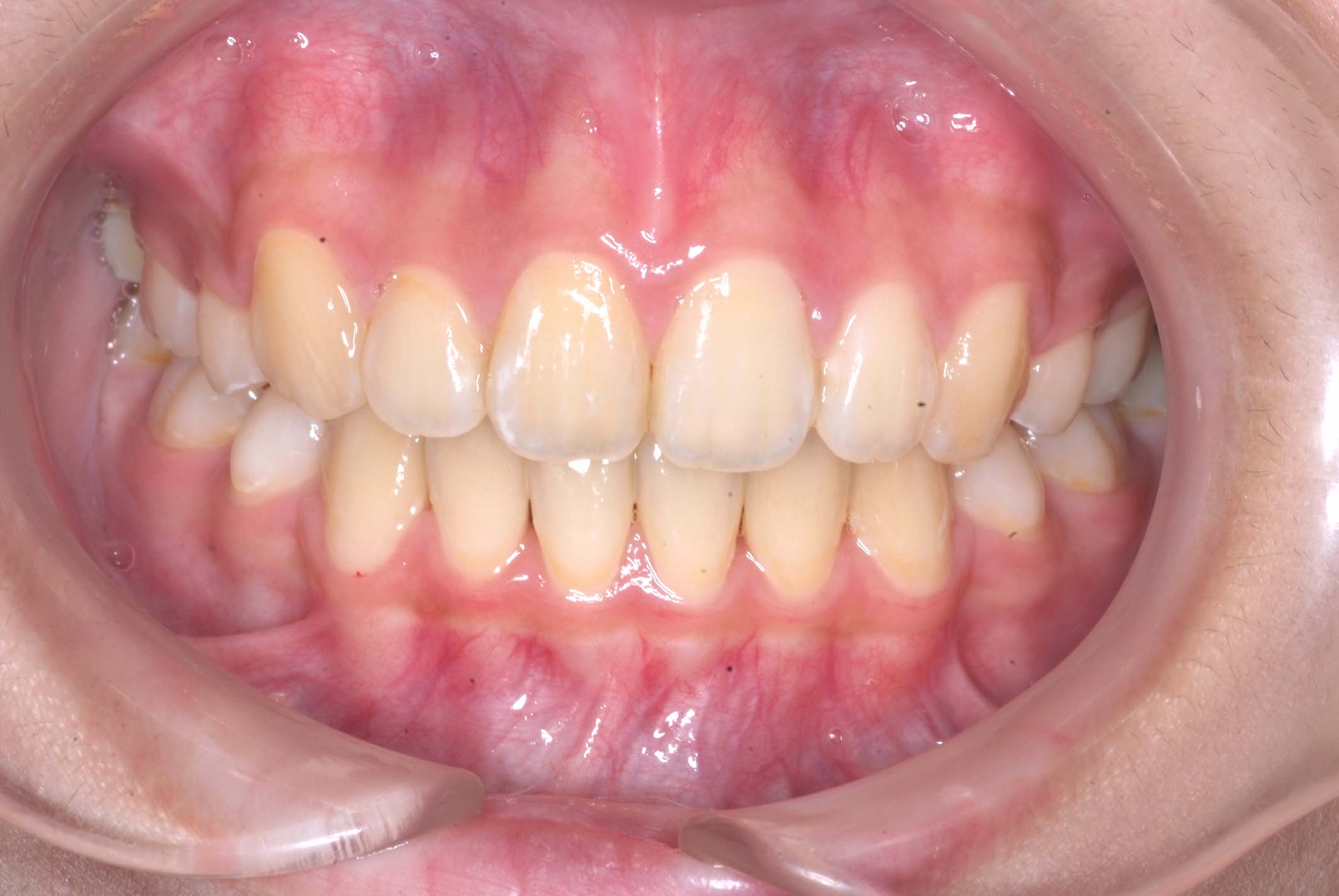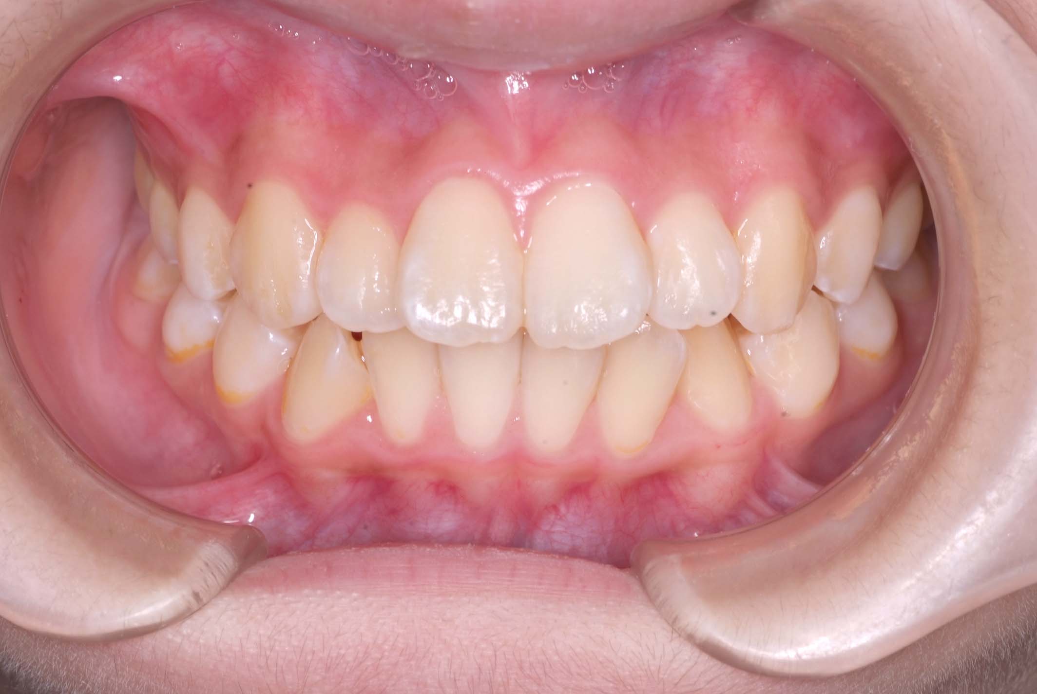前期治療は、リンガルアーチで正中離開を改善し、その後は歯列矯正用咬合誘導装置(マイオブレース)を使用して舌のトレーニングを行いました。後期治療は、上下左右4番を抜歯の上、セルフライゲーションブラケット装置(クリアティ・ウルトラ)で行いました。治療期間は前後期合わせて6年6ヶ月でした。通院回数:60回。
