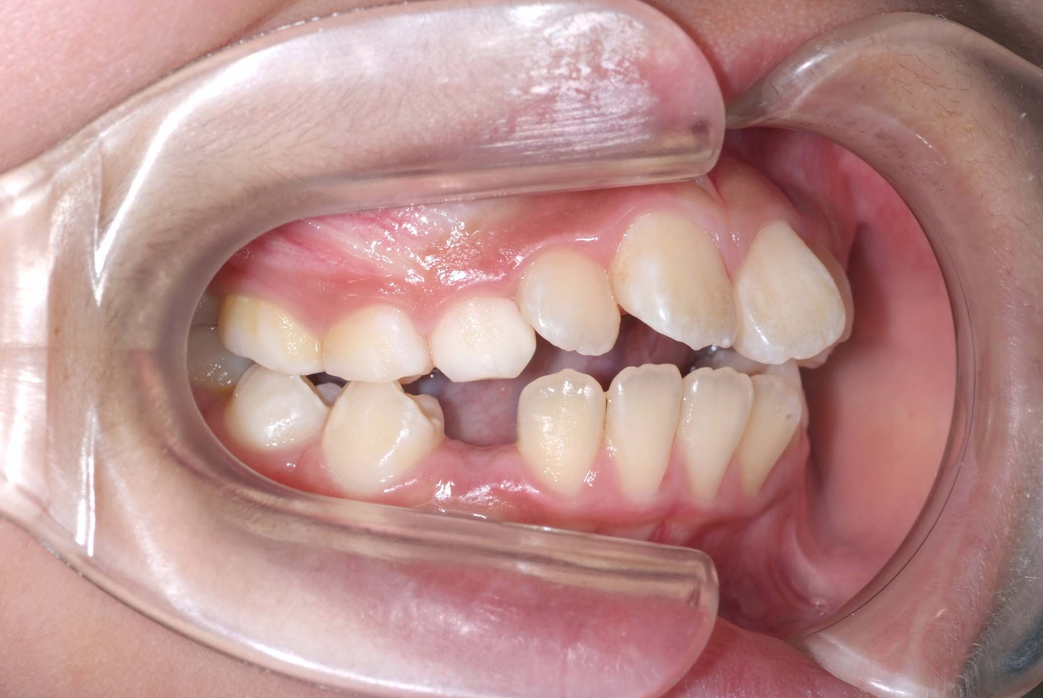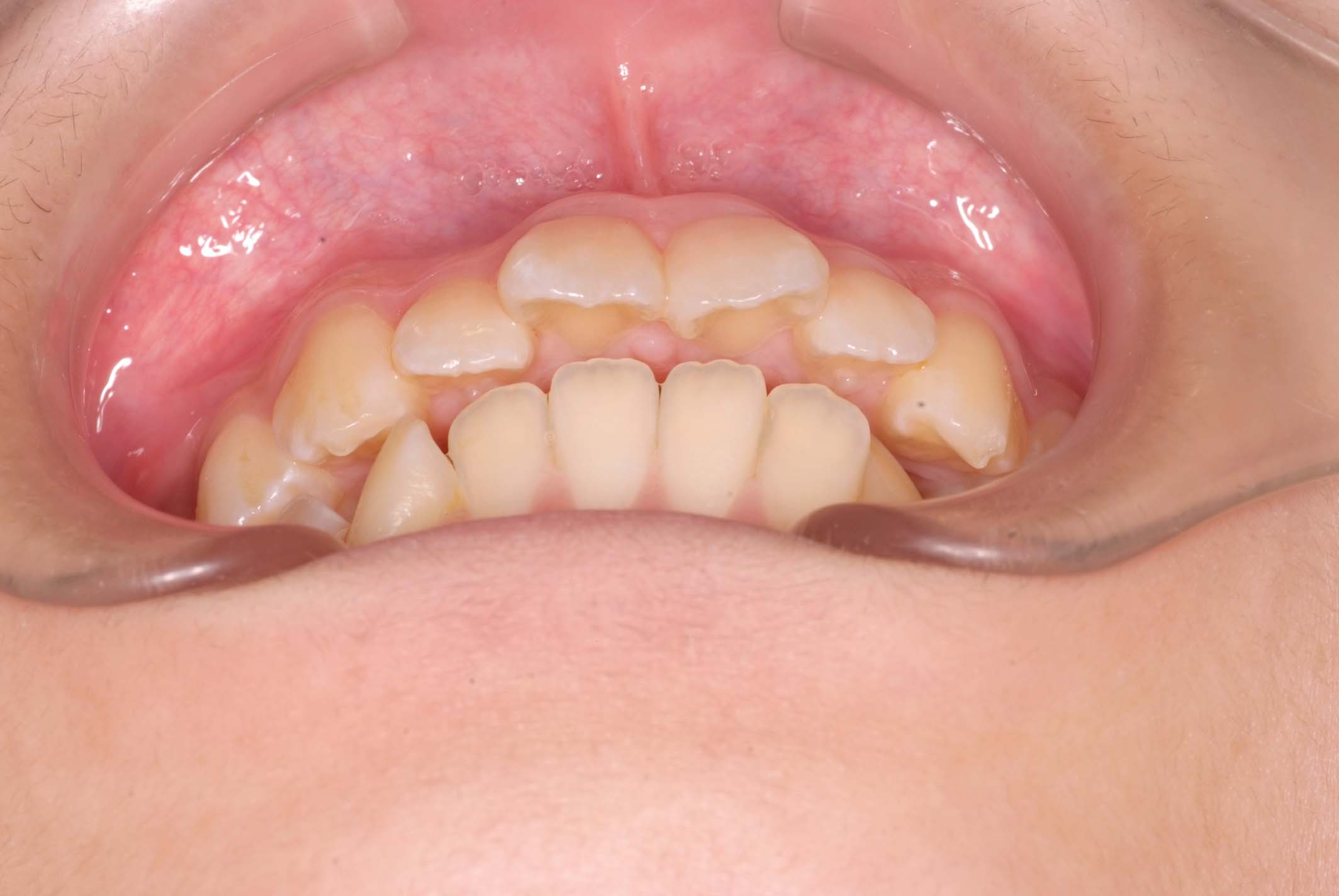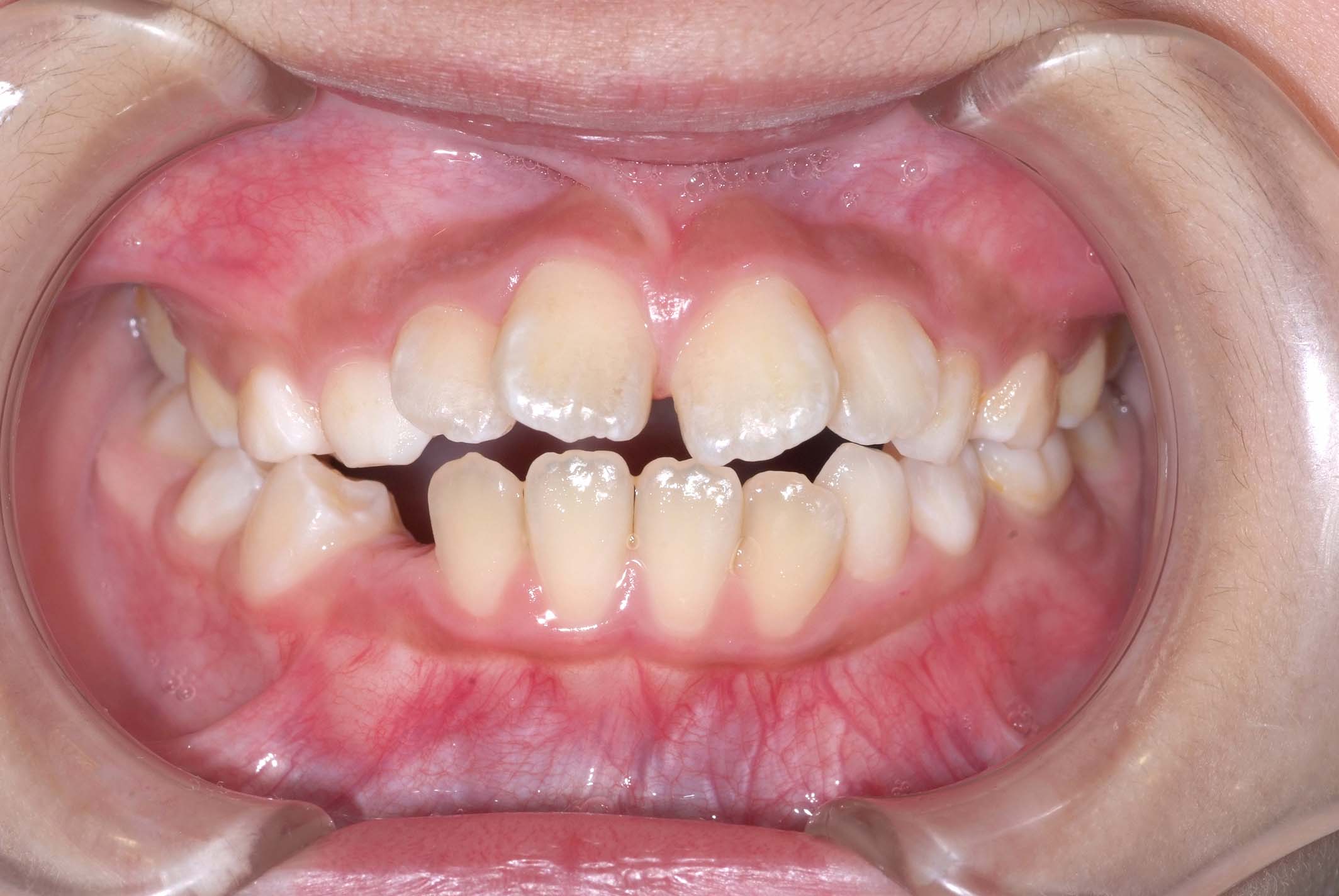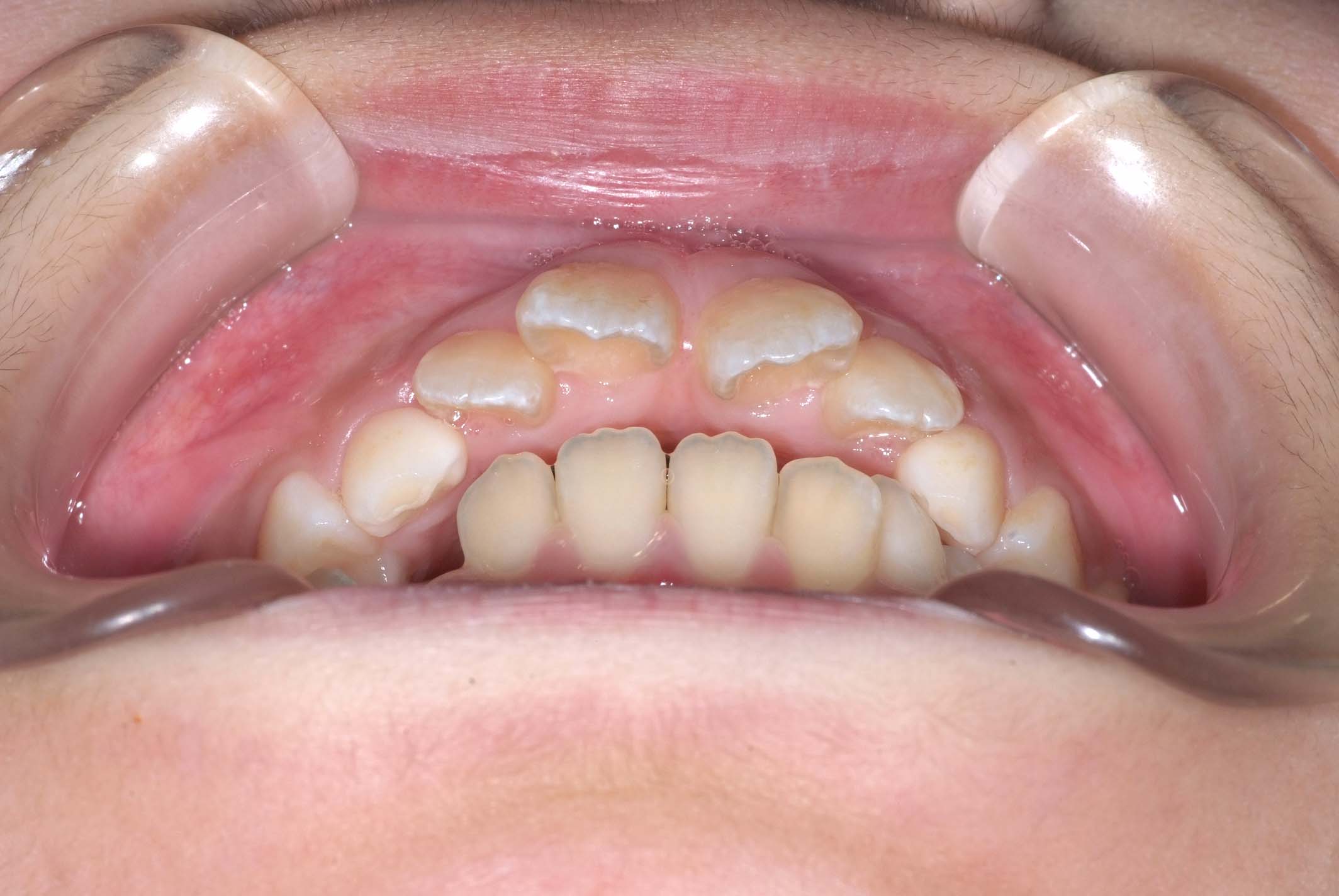 初診時年齢8才の女子で、前歯部開咬を気にして来院されました。